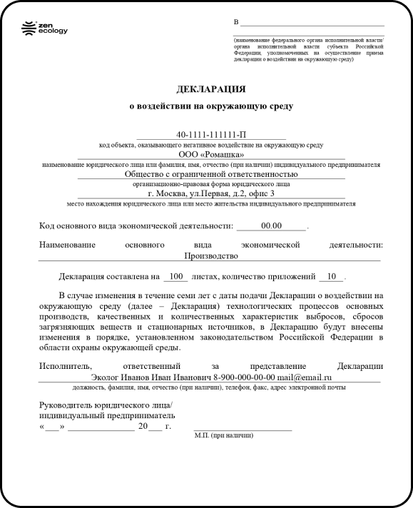 Декларация о воздействии на окружающую среду должна содержать следующие сведения: