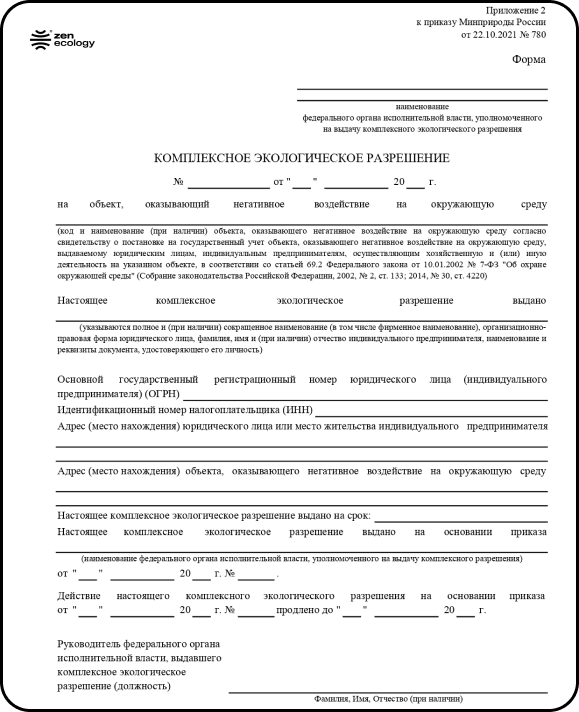 Комплексное экологическое разрешение выдается на отдельный объект, оказывающий негативное воздействие на окружающую среду, в том числе линейный объект, на основании заявки, подаваемой в уполномоченный Правительством Российской Федерации федеральный орган исполнительной власти.