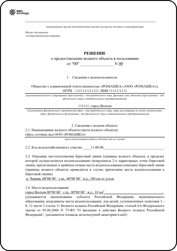 Документ, удостоверяющий законные основания пользования водным объектом, находящимся в федеральной собственности, собственности субъектов Российской Федерации или собственности муниципальных образований.